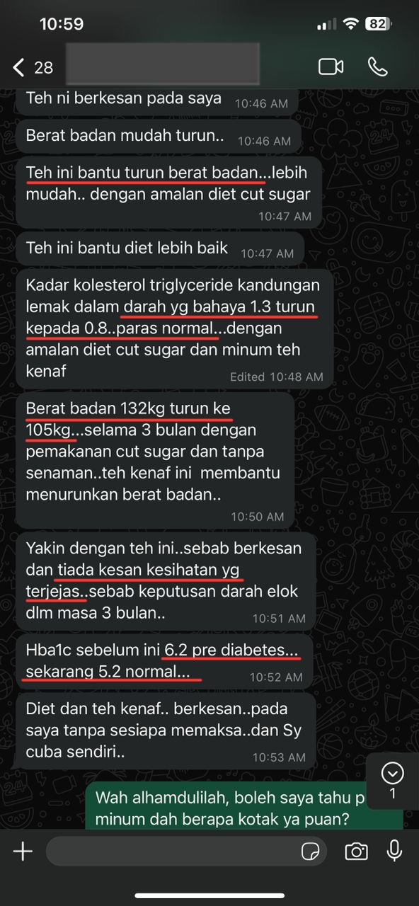 Kesan Dialami Pengguna Biokenaf Seawal 28 Hari Melalui Temubual Whatsapp